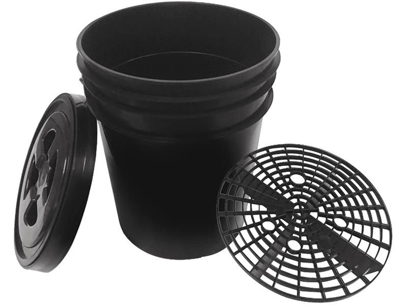 This durable bucket offers a grid guard to prevent large particles and grime and a lid for easy and safe transport.
