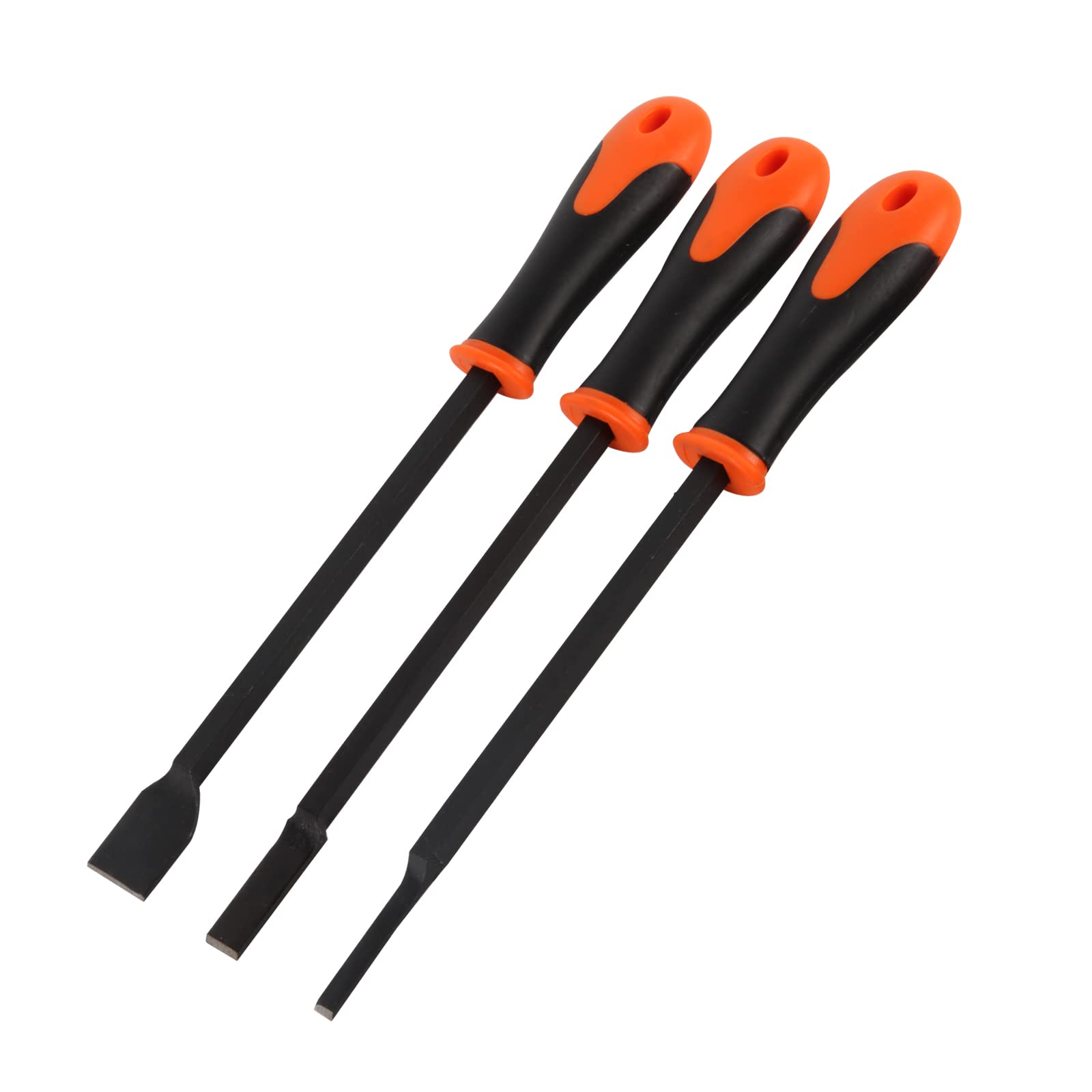 Hardened and tempered carbon steel shanks and heads are ‘offset to edge’ to allow easy scraping of flat surfaces with chrome finish for protection against corrosion. Simple ‘firmer’ style bevelled points with longer head lengths allow for scrapers to be re-ground several times for maximum service life. Impact resistant square section handle for secure grip even when greasy.