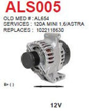 Alternator A115IM Opel Astra / Fiat 500 Doblo 1.3L diesel 12V 120A ALS005