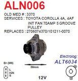 Alternator Toyota Camry 2.2L - RAV4 2.0L 12V 70A