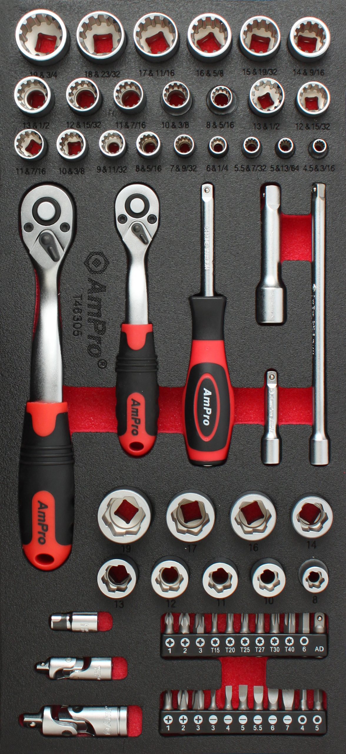 11 – 3/8″ Dr. Sockets: 8mm(5/16″), 10mm(3/8″), 11mm(7/16″), 12mm(15/32″),