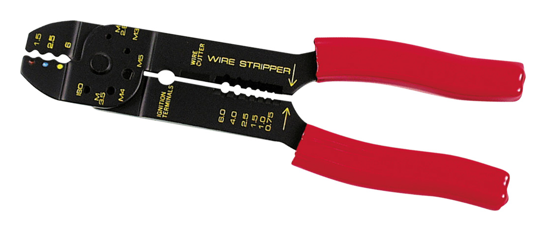 • Crimps insulated terminals and slices bolts• Cuts and strips wires from 10 to 22 gauge• Insulated handle protects from accidental shocks• Length: 8-1/2″ (215mm)